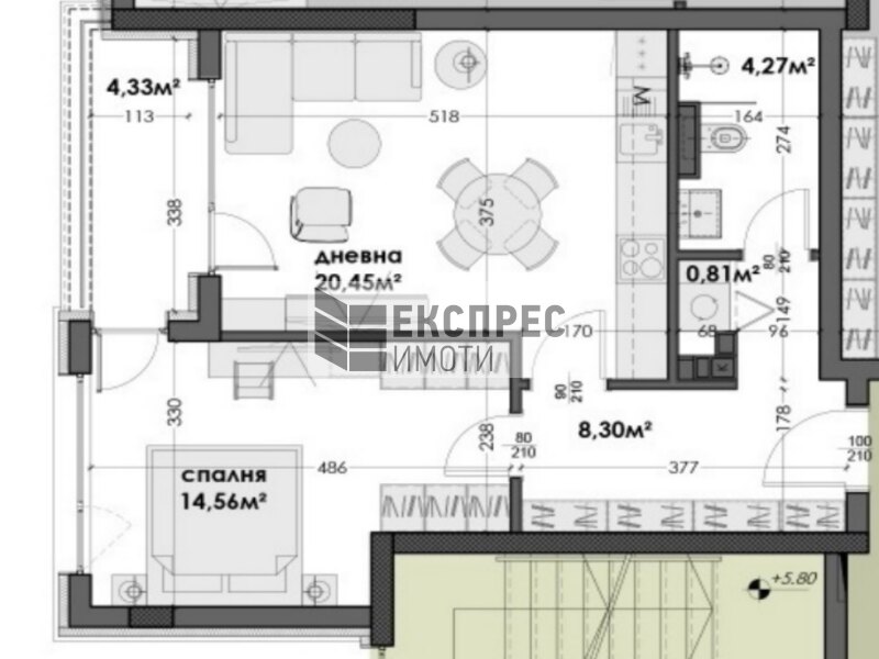 Двустаен апартамент