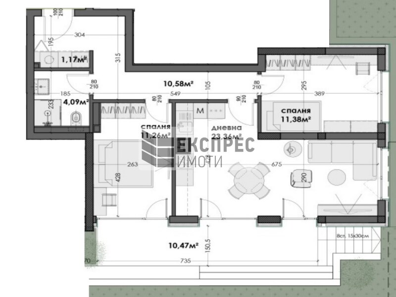 Тристаен апартамент