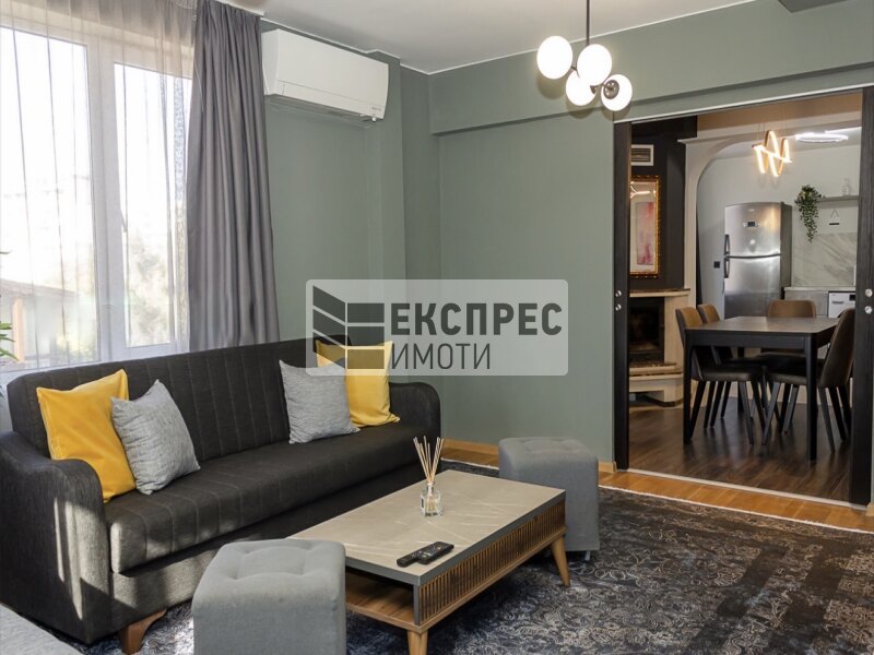 Express Imoti presents to your attention, a two-bedroom apartment for rent, located in Levski area, Varna, near the Second Building of the University of Economics, supermarket Billa. The apartment is located on the fifth floor in a building with an elevator and well-maintained common areas. The apartment consists of a kitchen with a dining room, living room, bedroom, bathroom with toilet, corridor and a spacious terrace. There is a basement room to the property. It is offered fully furnished and equipped. Heating/cooling via air conditioners.