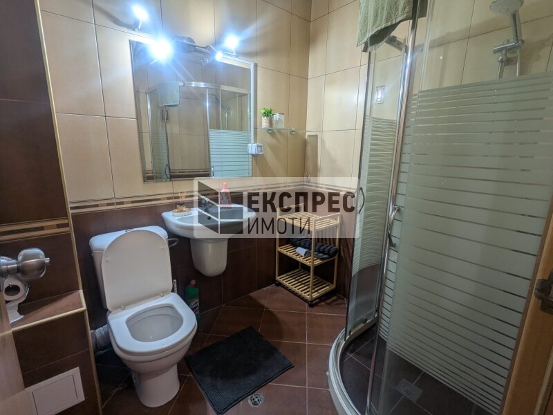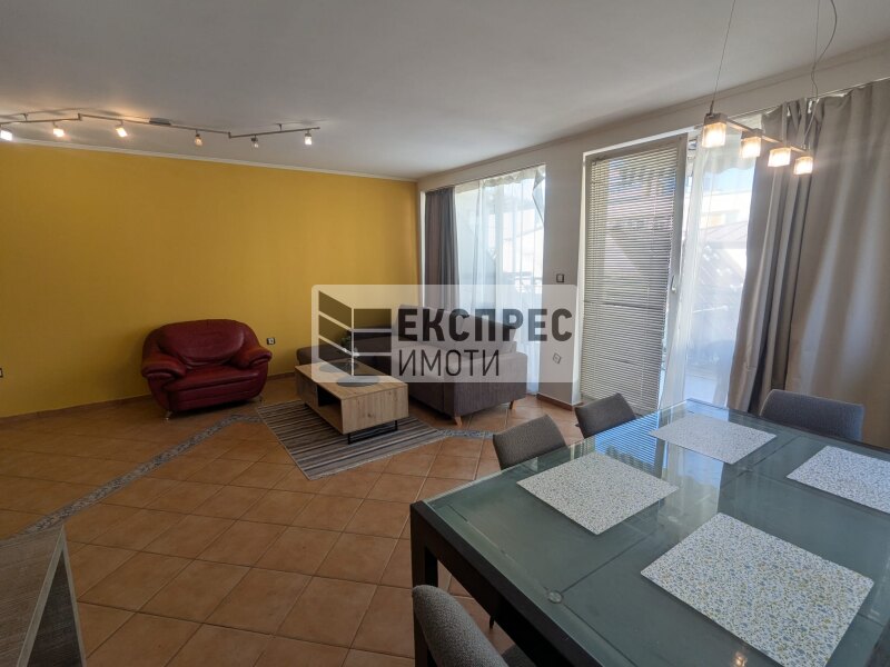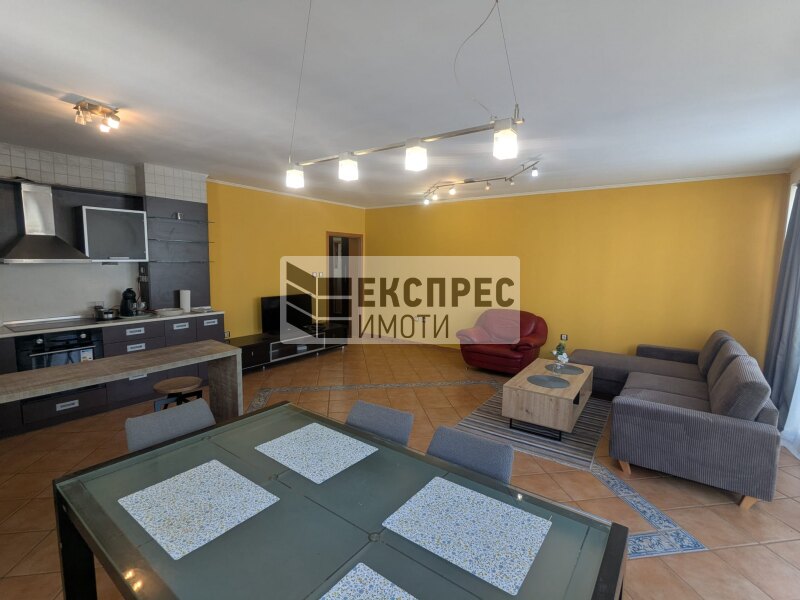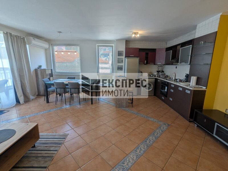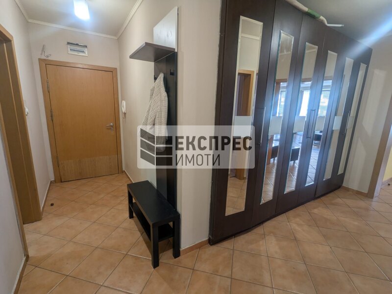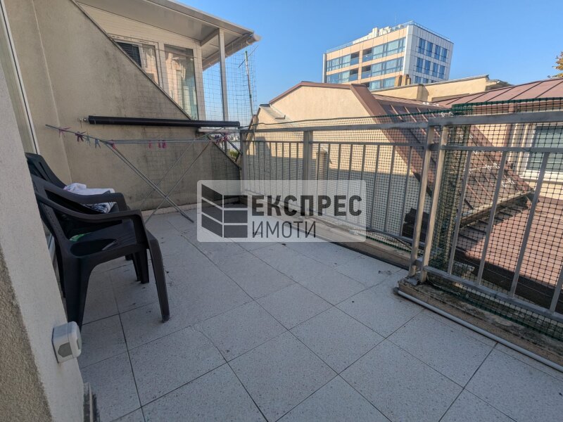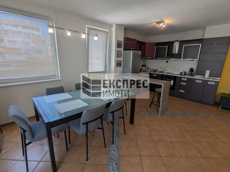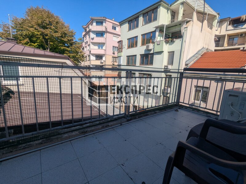 Express Imoti offers to your attention, a furnished two-bedroom apartment for rent in Greek Quarter, Varna, near the Roman therms, Primorski Pool, the Sea Garden and the beach. The property is located in a building with an elevator and excellently maintained common areas. It consists of a spacious living room with a kitchenette, two bedrooms, a hallway, a bathroom with a toilet, a second toilet, a large terrace. The apartment is offered fully furnished and equipped. The heating is with air conditioning in all rooms. There is an option to rent a parking space for an additional fee.