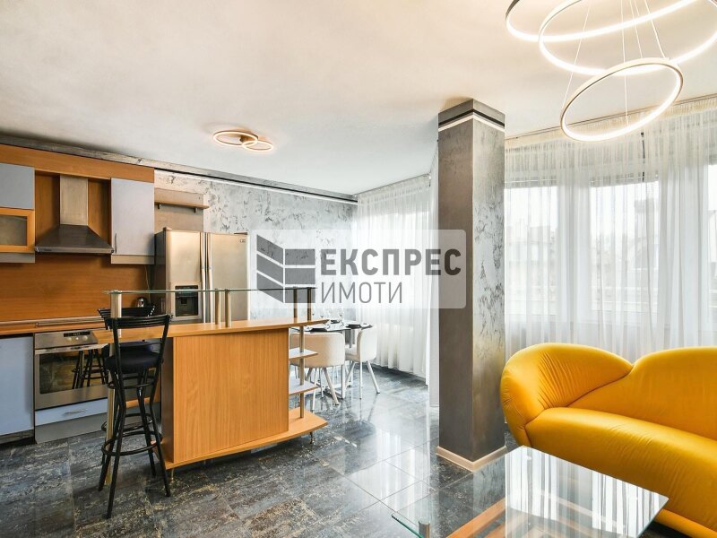 Express property offers to your attention furnished, large apartment for rent in the area of ​​Regional Hospital, Varna, close to Medical University. The apartment is located in a building with well maintained common areas. Close to supermarkets, entertainment and educational institutions, bus stops and many others. The apartment consists of a spacious living room with kitchen, four bedrooms (each with air conditioning and terrace), corridor, two bathrooms, four terraces. The heating is air-conditioned.