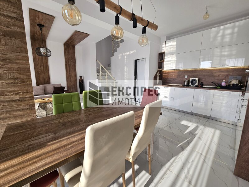 Express Imoti offers to your attention a new, luxuriously furnished, three-storey house for rent in the area of Sotira area, Varna, located near the main boulevard and Sveta Marina Hospital. The property is located in a gated complex with a garden and a playground. The property consists of